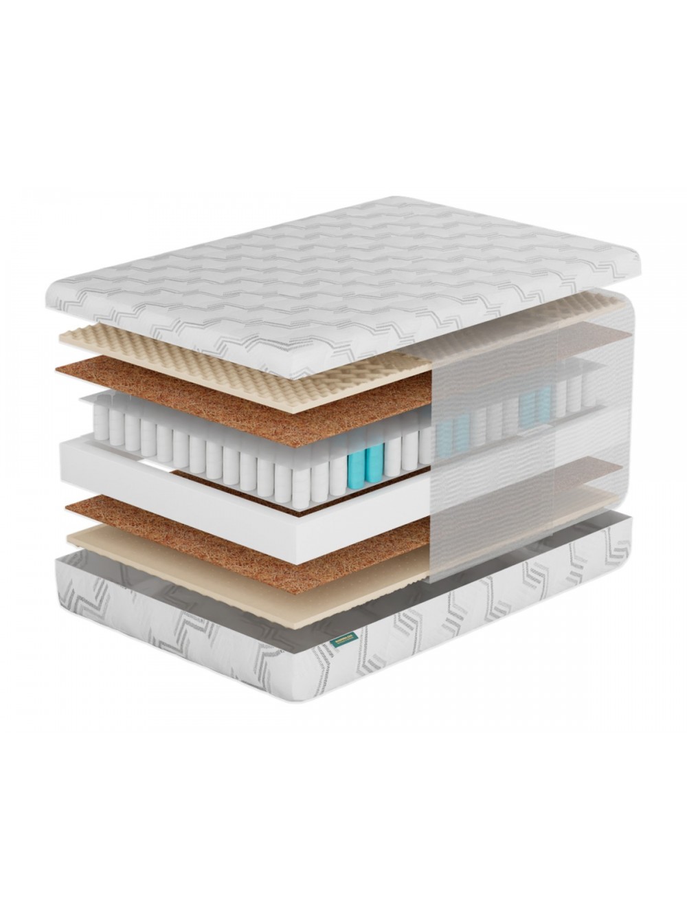 1. Съемный трикотажный  чехол Чехол выполнен из прочной трикотажной ткани, в составе которой не менее 40% натурального хлопка. Ткань простегана по технологии глубокой стежки. Особая техника стёжки позволяет равномерно, без потери формы и объёма, зафиксировать все составляющие чехла. Хлопковые нити в составе ткани обеспечивают здоровый микроклимат во время сна. Чехол имеет разъемную молнию, что позволяет стирать его в домашних условиях.